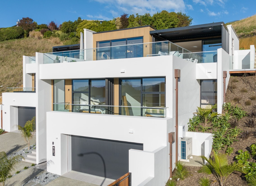 Carved into the rock, these two townhouses enjoy expansive vistas to Little Kaiteriteri