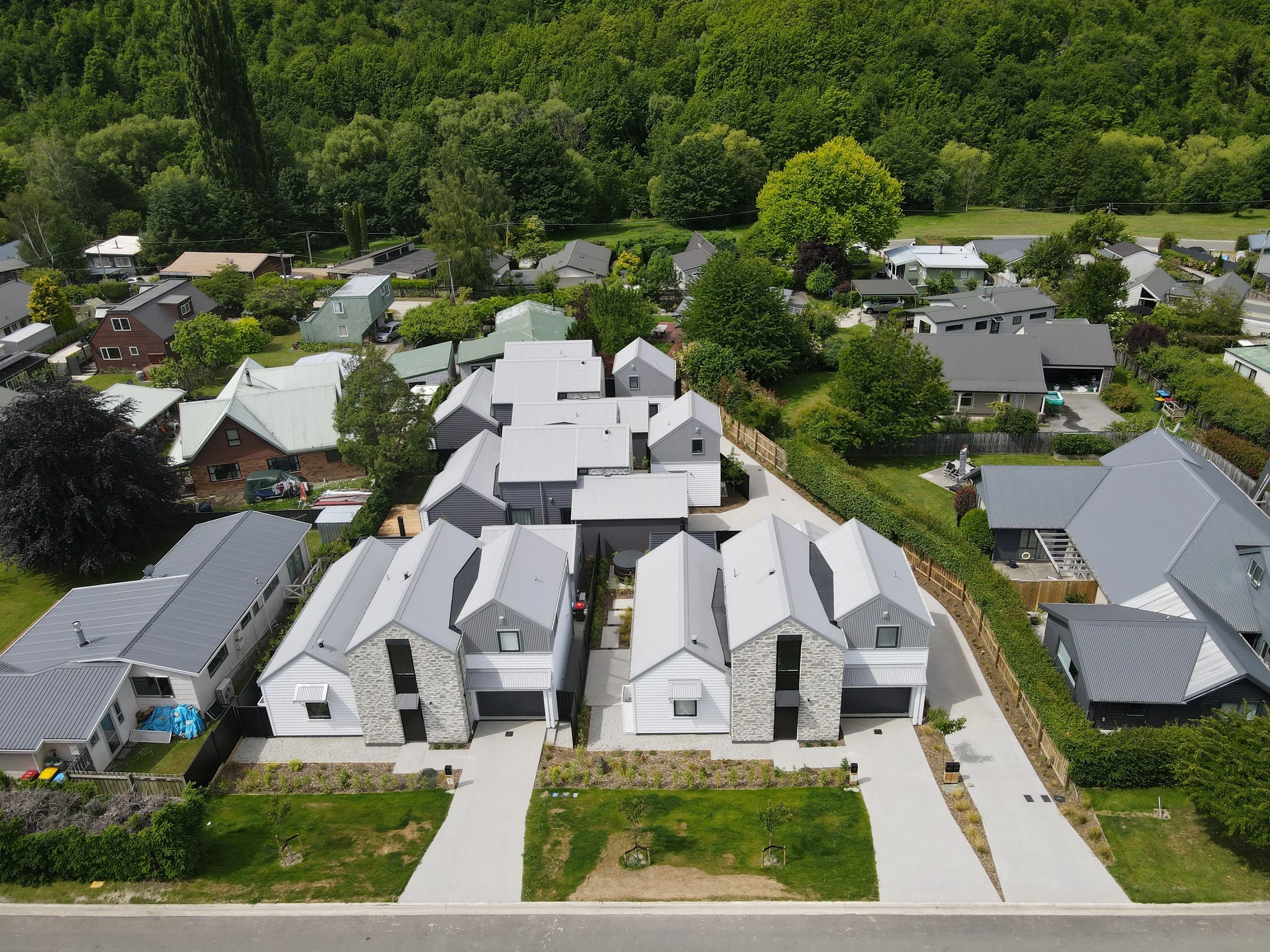Four high-end, two-storey houses have been built, each with a detached sleepout to make the most of the available space. The design combines modern luxury with respect for the town’s historical character.